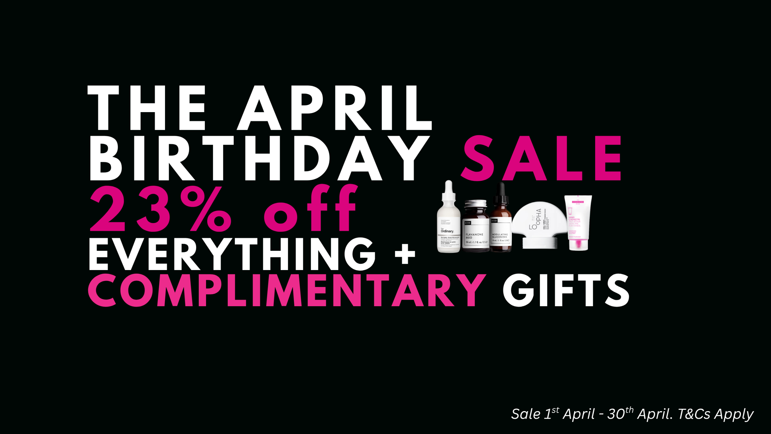 - 1st April – 9th April – Complimentary The Ordinary 30ml Moisturiser with minimum spend.